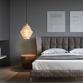 Elevate your home decor with this vintage-style chandelier. Antique brass metalwork and layered clear glass shades with striped detail create a warm, inviting ambiance. The adjustable drape makes it the perfect fit for any room.