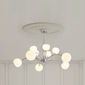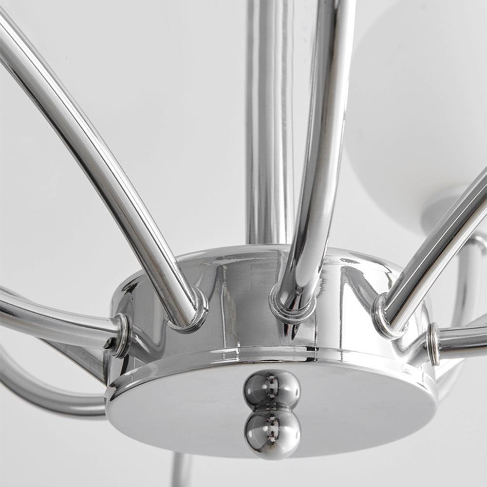 Embrace modern simplicity with our White Glass Globe Sputnik Shape Chandelier. This striking fixture combines the clean elegance of white glass globes with a captivating sputnik design, creating a contemporary centerpiece for any room. Illuminate your space with a soft, inviting glow and make a bold style statement.