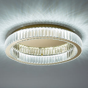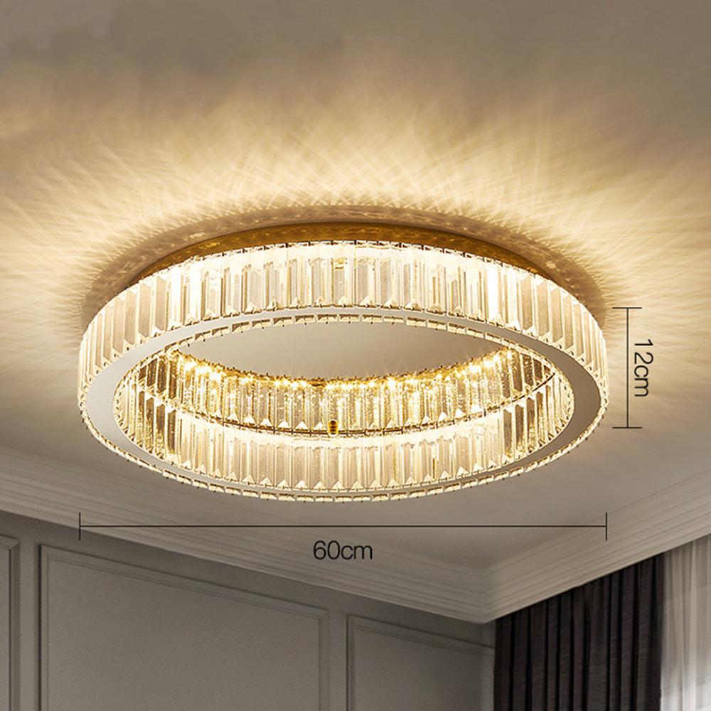 Adorn your space with opulence using our Modern Circle Gold Crystal Ceiling Light. This ceiling light showcases a circular design with gold accents and crystal embellishments, creating a luxurious and contemporary aesthetic.