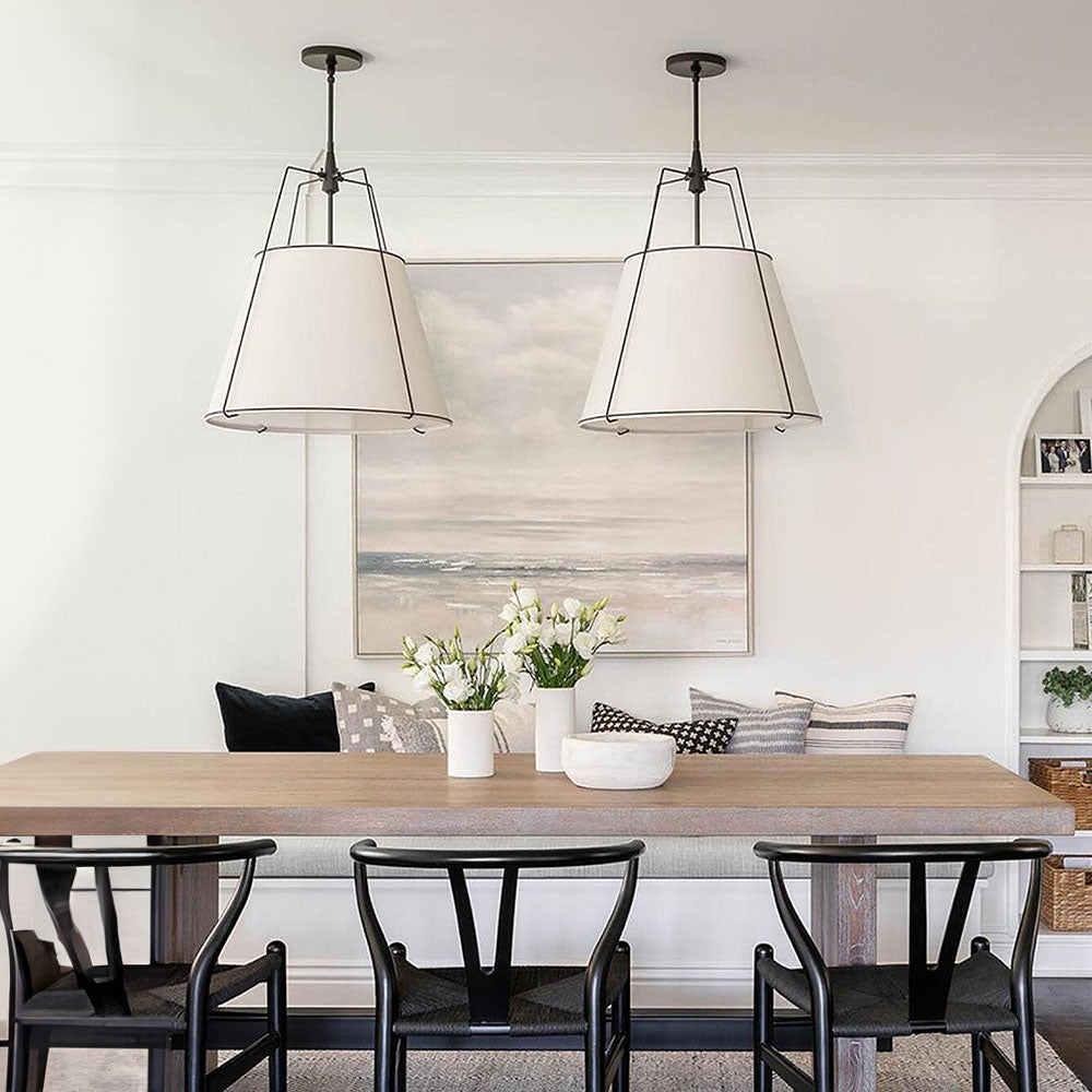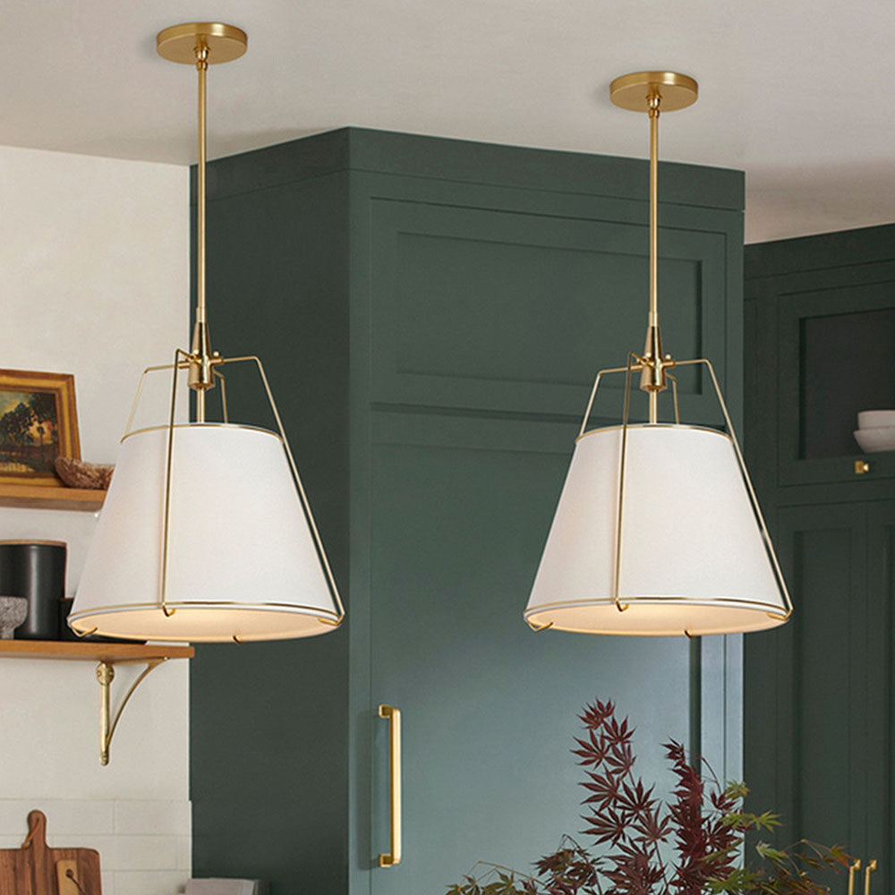 Brighten up your space with the Modern Fabric Conical White Hanging Light. This stylish pendant lamp combines a sleek, conical shape with a clean white fabric shade, offering a chic and contemporary touch to any room.