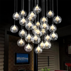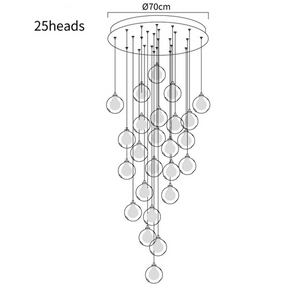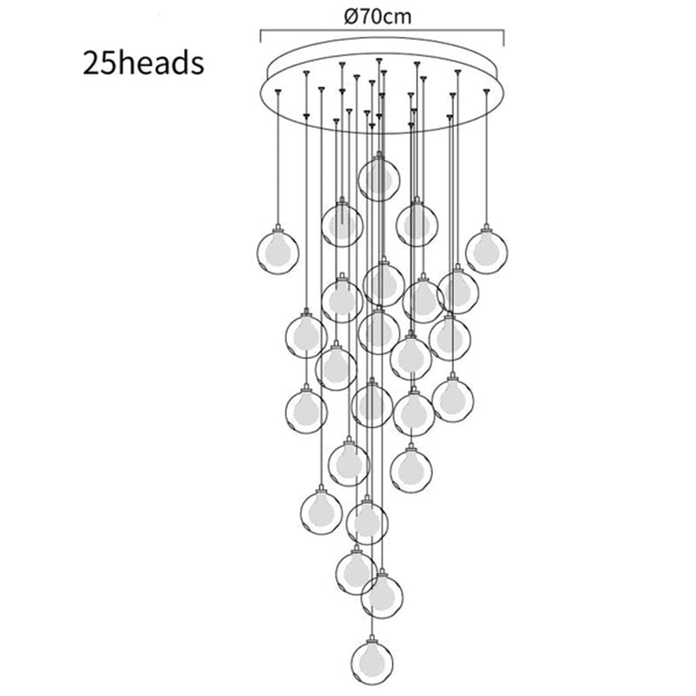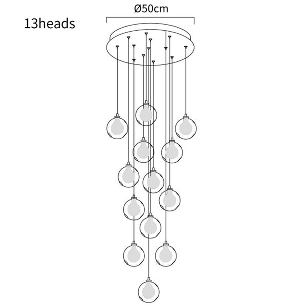 Illuminate your stairway with our multi-head Glass Globe Cluster Stairway Light Pendant Light. Featuring multiple glass globes hanging in a cluster, this pendant light creates a stunning visual effect that adds elegance and charm to any staircase. The transparent globes beautifully diffuse the light, creating a warm and inviting ambiance. With its adjustable height feature, it is perfect for stairways of varying heights.