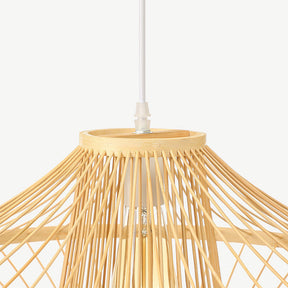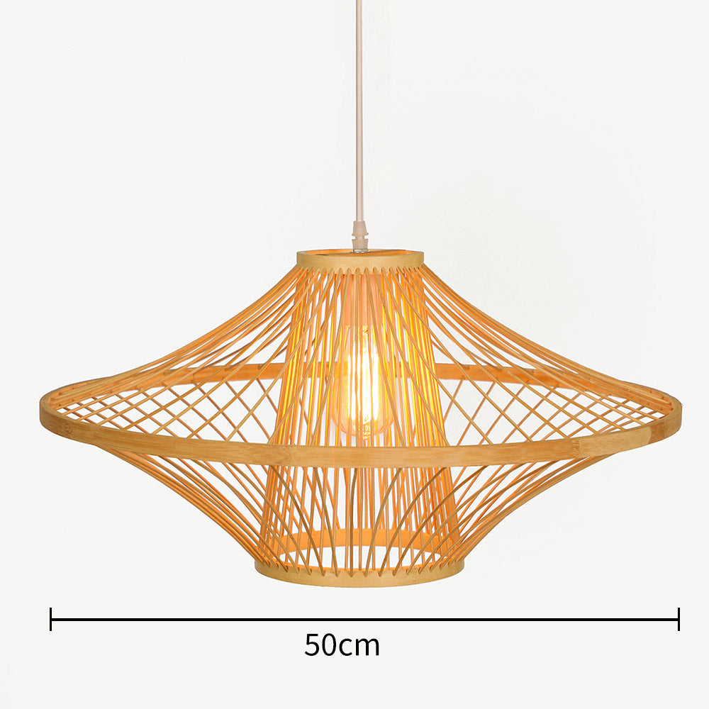 This bamboo pendant light is crafted from natural materials. The light fixtures are the perfect focal point for any room, creating a warm and inviting atmosphere that is sure to impress your guests. The unique design will be sure to be a conversation starter in any home.